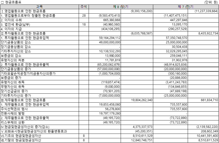 [전자공고] 제8기 결산공고 2024-03-27 10:05:10 ' * https://dart.fss.or.kr/dsaf001/main.do?rcpNo=20240319900466&dcmNo=9730016 목록