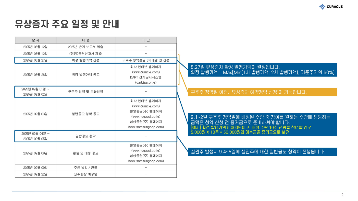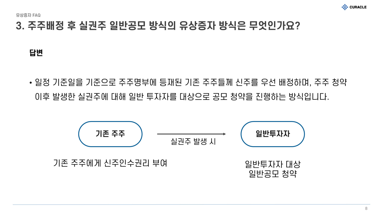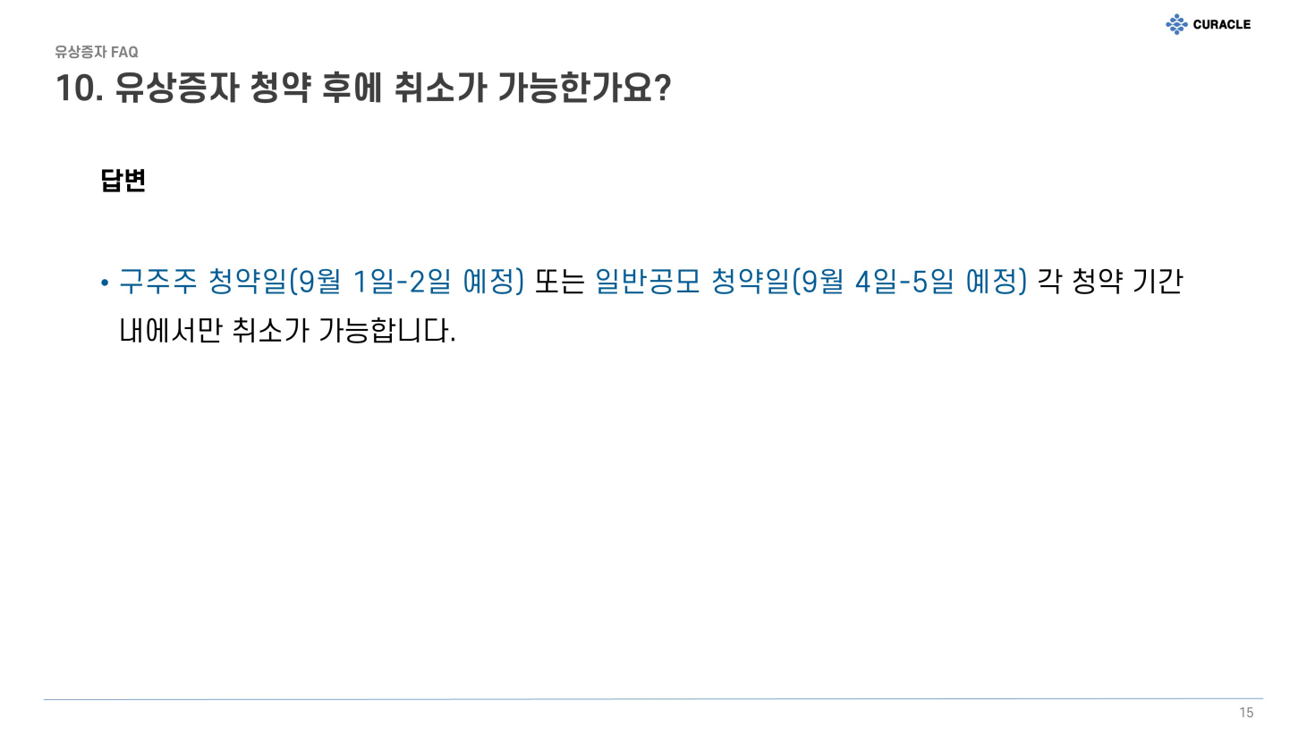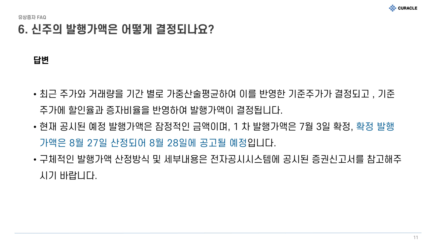 아울러 큐라클 홈페이지를 통해서도 투자자들이 자주 묻는 질문에 대한 답변을 FAQ로 정리하여 주주 분들께 공유해 나가겠습니다.