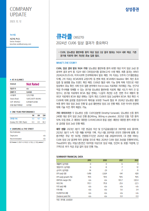 [레포트] 삼성증권 레포트 발간(2023.12) 2023-12-12 10:11:10 (수정)231129_큐라클.pdf 12일 삼성증권에서 당사 리포트를 발간했습니다. 자세한 내용은 첨부파일에서 확인하실 수 있습니다. 감사합니다. 목록